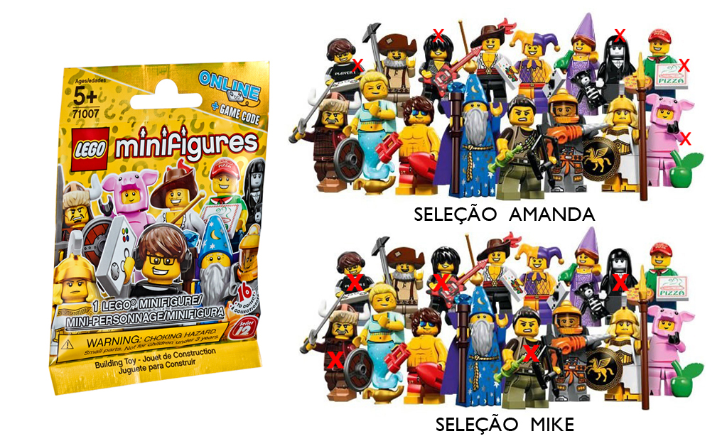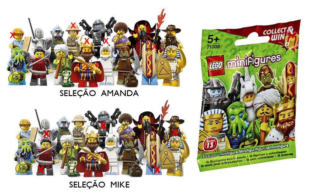 Olá pessoal! Hoje vou falar sobre as Minifigures Lego: Série 12 e 13. Pra quem não sabe a empresa Lego, fabrica personagens sortidos. Nas lojas de brinquedo e na loja oficial Lego, encontrei cada pacotinho por R$ 19,90 o que não anima muito, afinal as figuras não são personagens famosos e você não pode escolher o personagem.