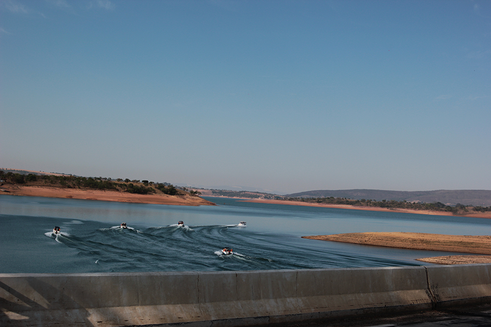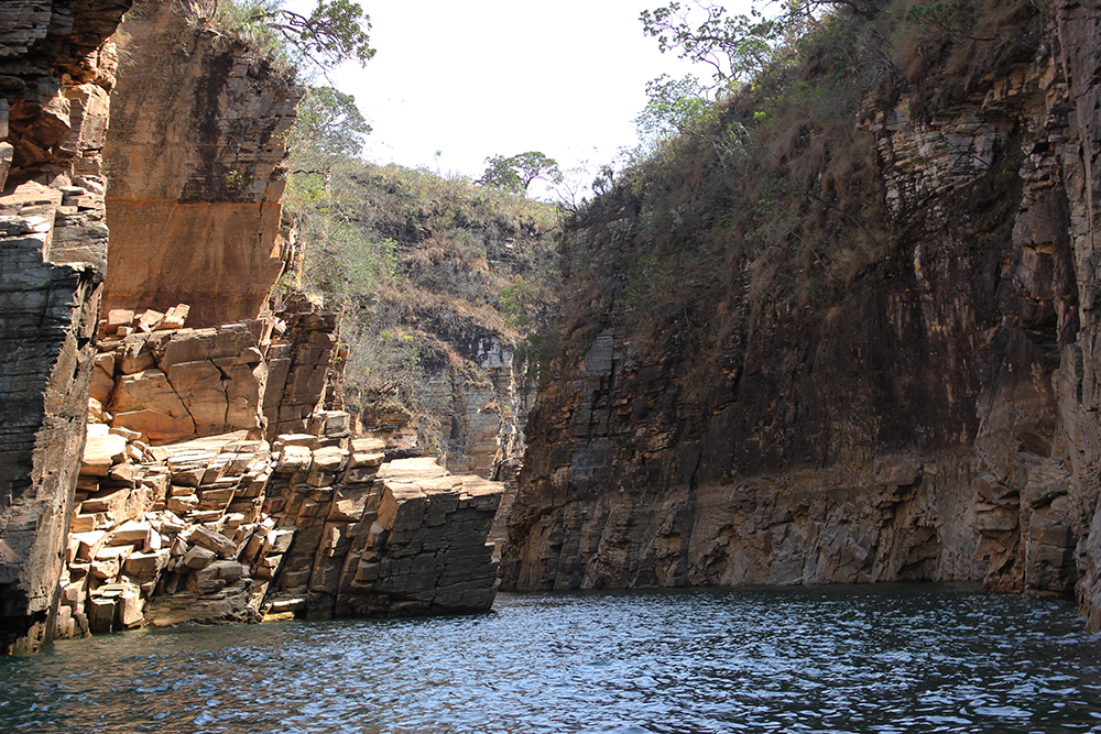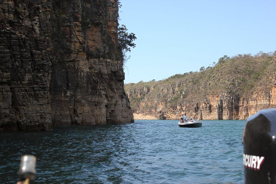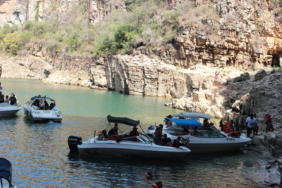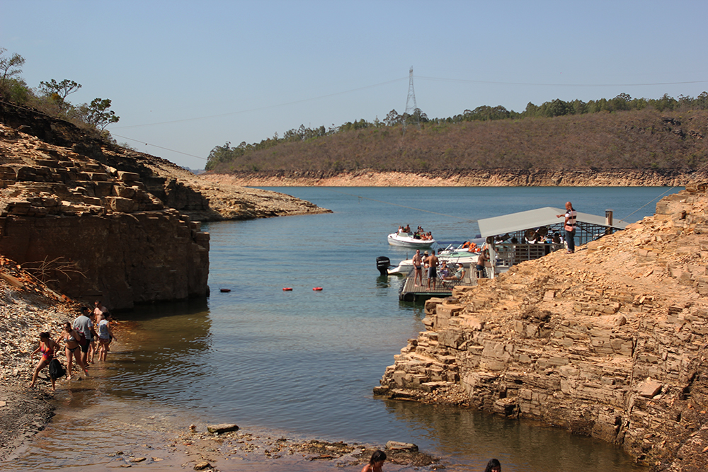 A lancha deixa as pessoas no deck, assim pode aproveitar para nadar, tirar foto e apreciar a vista. O nível da água estava bom, deu para andar tranquilamente, tem muitas pedras no fundo da lagoa, então, vá de chinelo.