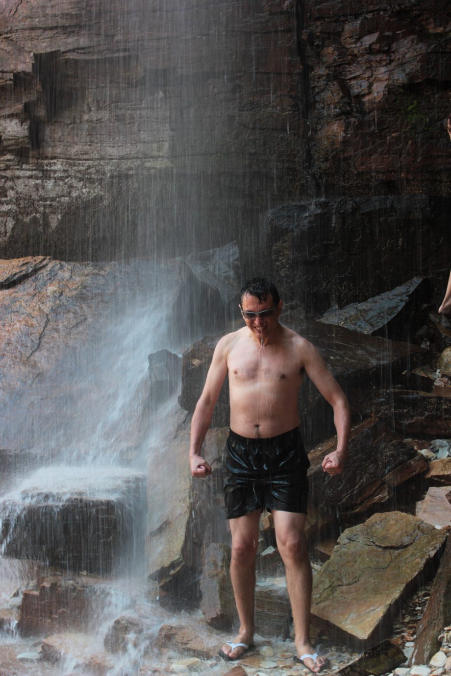 Chegando no Canyon, podemos ver a imensidão daquelas rochas, com um destaque lindo da cachoeira. A parada nesse lugar foi um pouco maior e aproveitamos para tirar fotos, o Mike se aventurou entrando na cachoeira, a água é bem forte e BEM gelada.