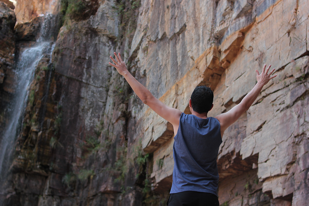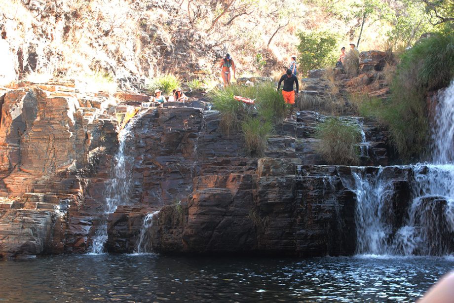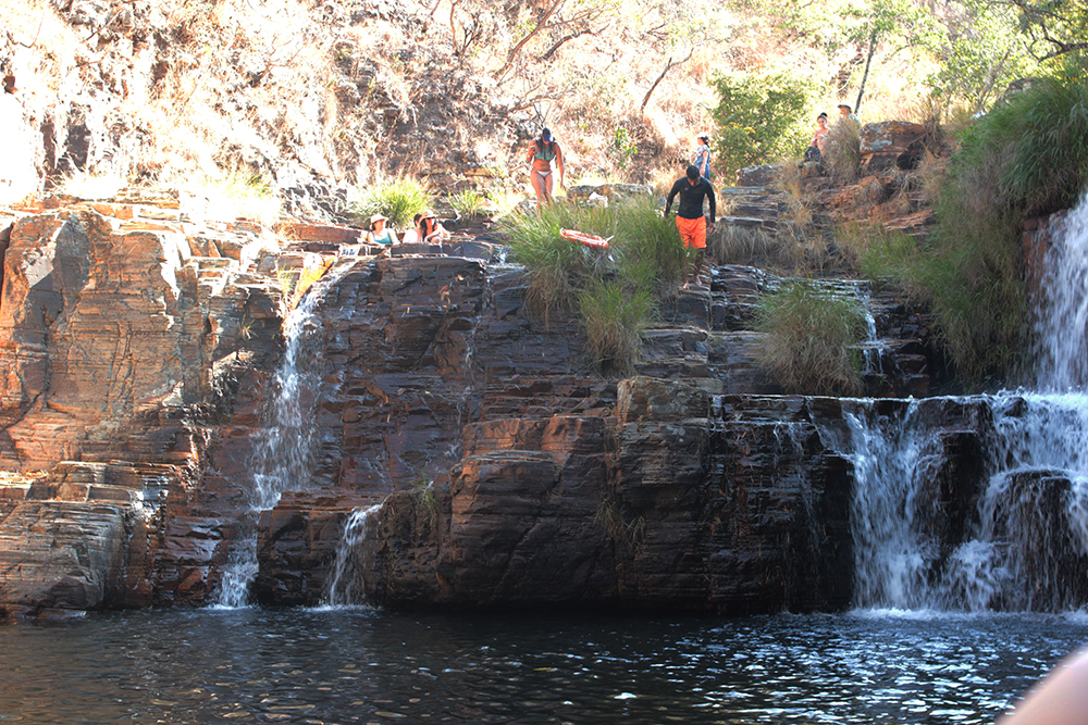 O caminho leva em torno de uns 20 minutos até chegar em uma escada natural, o degrau dela é bem irregular e possui uma corda de aço do lado para segurar. Após atravessar a escada, chega em uma “piscina natural” com água cristalina e muitos peixes. Existe uma cachoeira, mas o acesso é bem difícil, fica do lado esquerdo, tem que esticar bem a perna para subir, passa também por cima de raízes, pedras, existe uma corda de aço, e uma ladeira do outro lado, confesso que suei de nervoso, o ideal é usar um tênis para ter estabilidade, mas quando acaba esse caminho vem a água, por isso, fomos de chinelo.