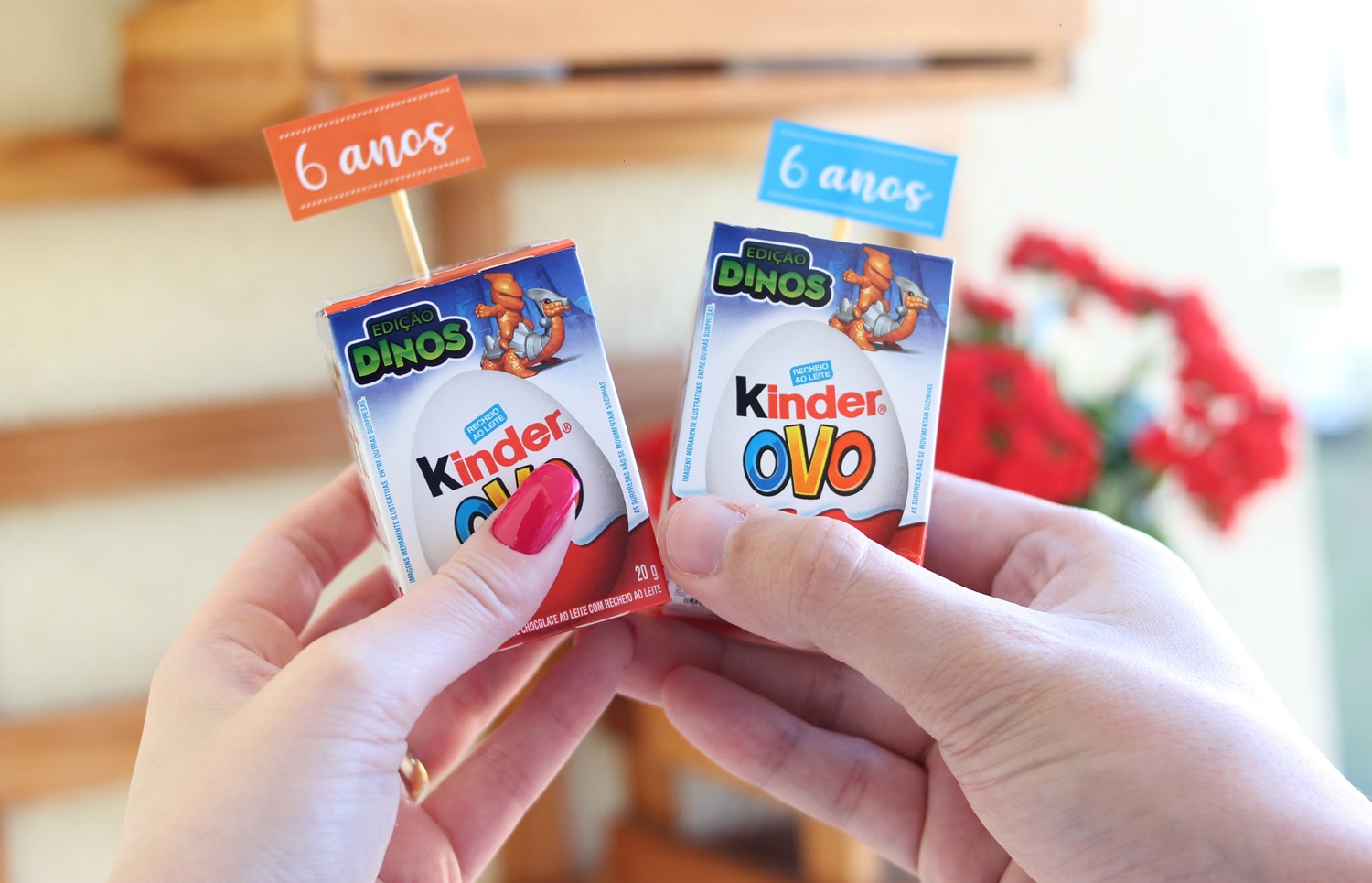 E aqui são as nossas lembrancinhas que vão para o nosso Baú! “Cara (literalmente) Kinder Ovo, você já foi melhor nos brindes e o chocolate não parecia o mesmo, desculpa a sinceridade.” (Em breve trago uma foto das surpresinhas)