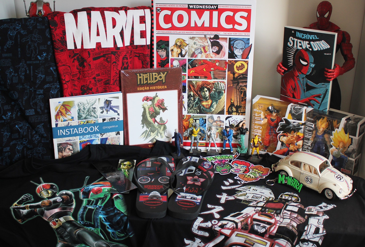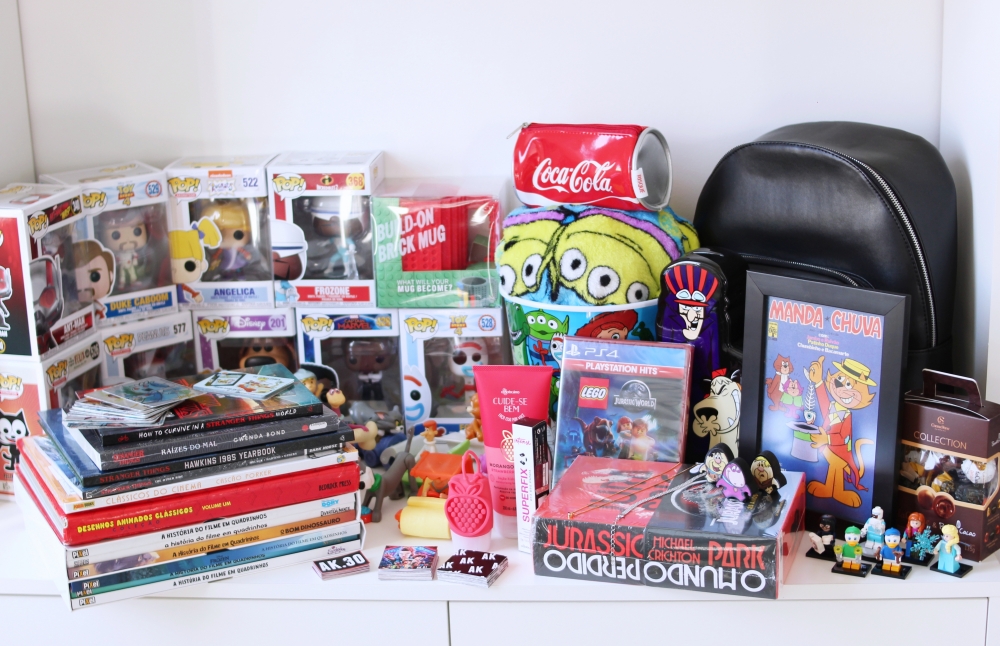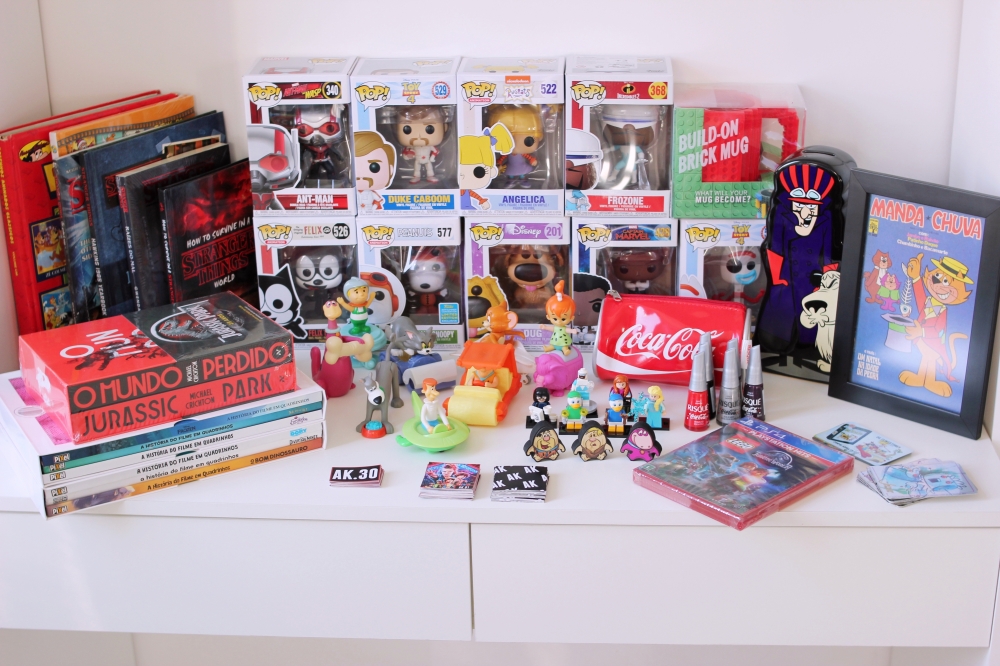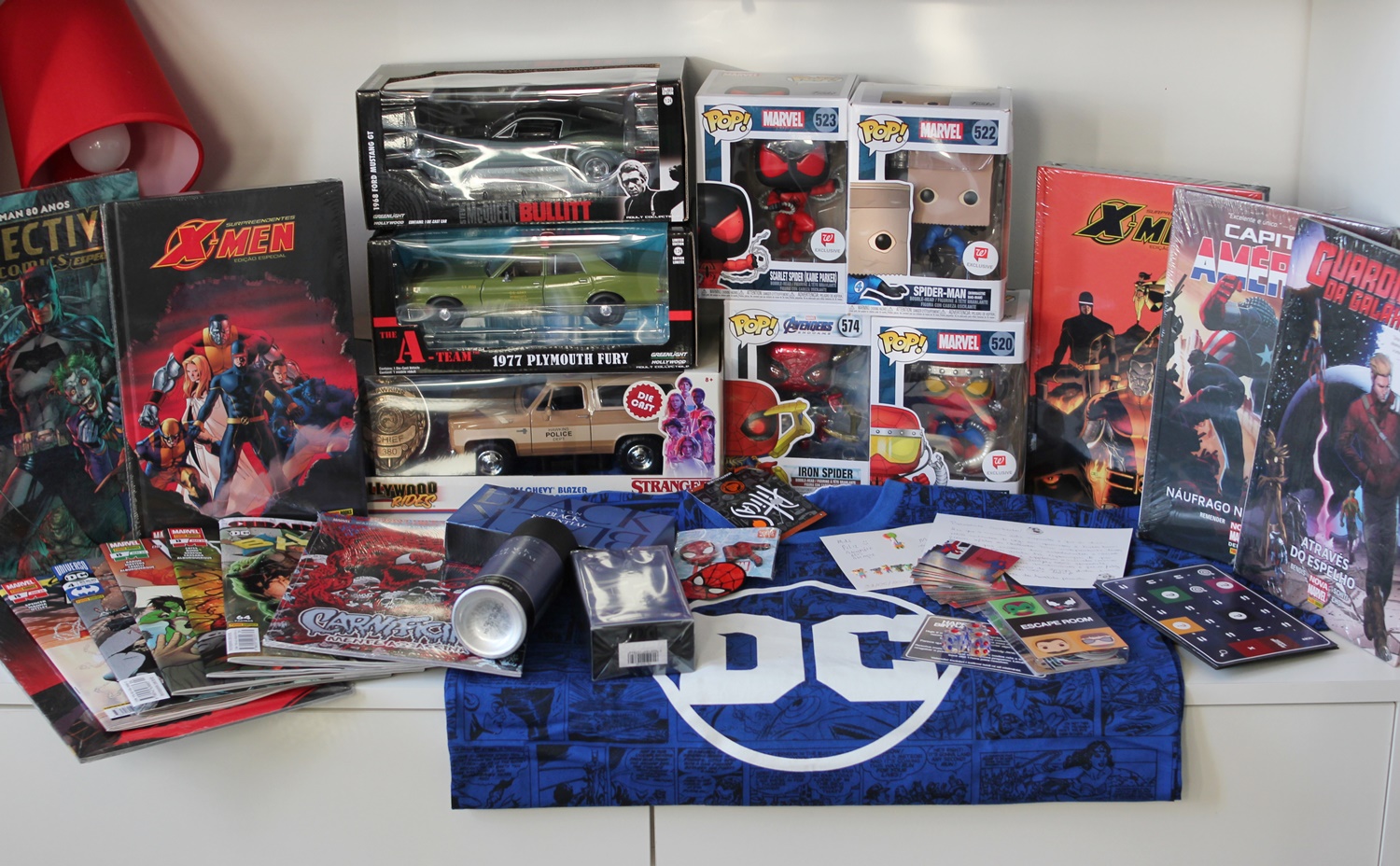 Ganhei Funkos, Pins e Perfume da minha família. O Mike me presenteou com Funkos, Legos e Quadros com as fotos que eu tirei. Além disso, ele providenciou que minhas fotos estivessem disponíveis para venda lá na loja da Comic City (seria um presente de empreendedor? haha)
