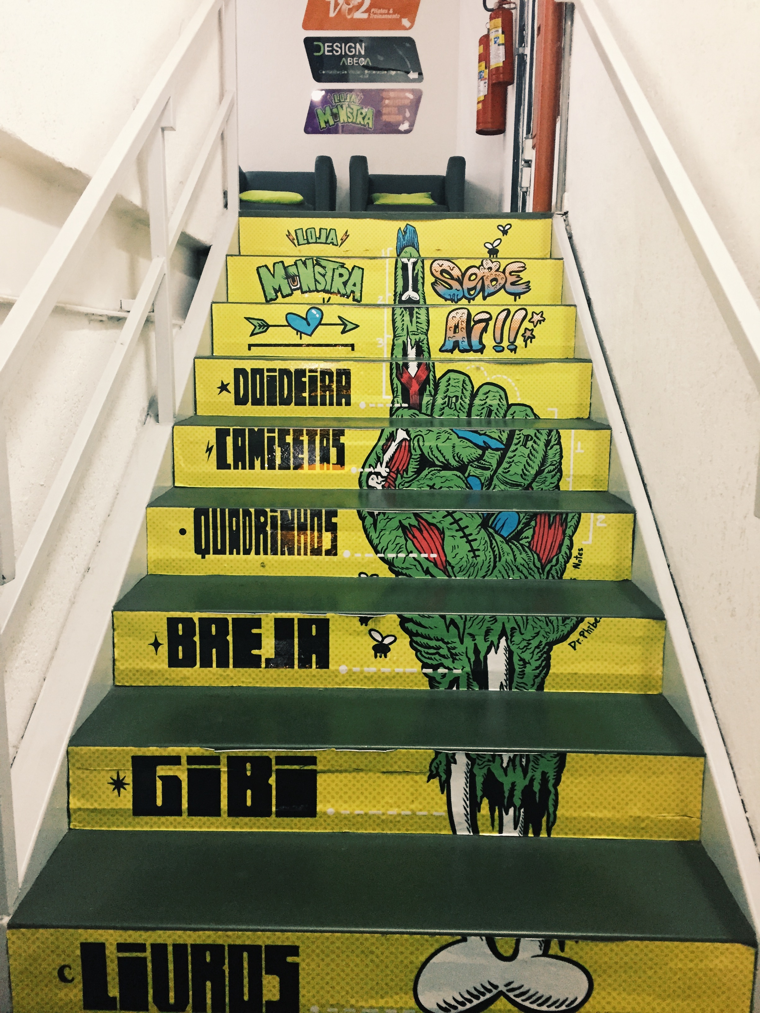 Chegando na Loja Monstra a decoração começa na escada, achamos muito legal cada detalhe. Enquanto o Mike escolhia o que iria comprar, eu me divertia tirando algumas fotos. Com certeza vale a pena uma visita!