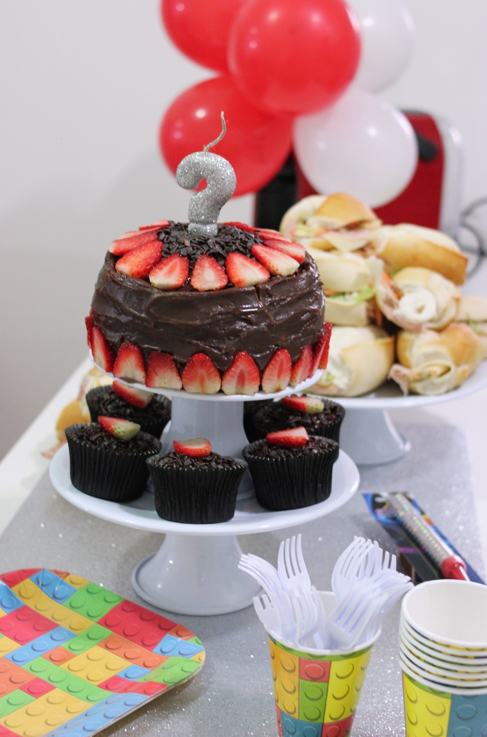 Minha mãe cuidou do bolo e dos lanchinhos, e o tema da vez foi LEGO! E a vela de ponto de interrogação, ficou perfeita haha.