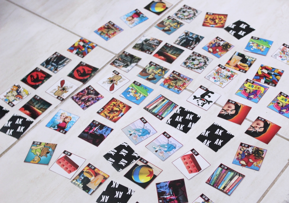 Aqui estão as plaquinhas que  tinham nos presentes e o jogo da memória. Ah! Um detalhe bem legal é que o tema das peças representavam o tema dos presentes, MAS, o Mike deixou embaralhado, então quando eu abria o presente, não era o mesmo da peça, o que foi bem legal, porque a expectativa aumentava e era sempre uma surpresa!