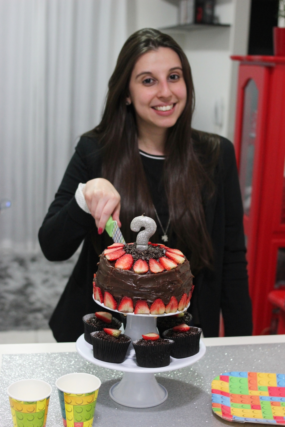 Depois da mega surpresa, foi hora de cantar parabéns e aproveitar o bolo de prestígio ma-ra-vi-lho-so que minha mãe preparou, tiramos foto com as máscaras e mostrei também o meu look lego que escolhi! Essa blusa é da Adidas em parceria com a Lego, não poderia ser mais a minha cara!