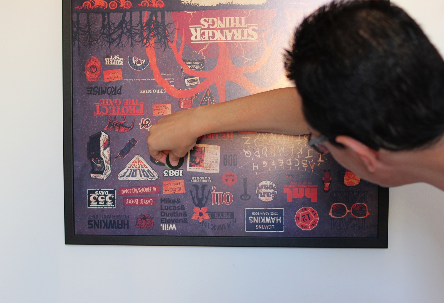 O mini pôster dos Goonies não poderia faltar, o Mike é super fã do filme.