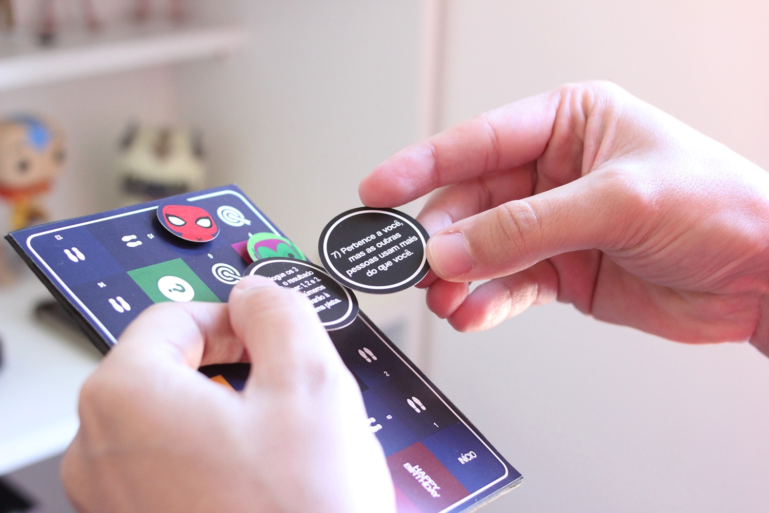 Veja alguns detalhes do jogo de tabuleiro que foi criado pra mim, a última foto é o crachá e a ficha do programa: