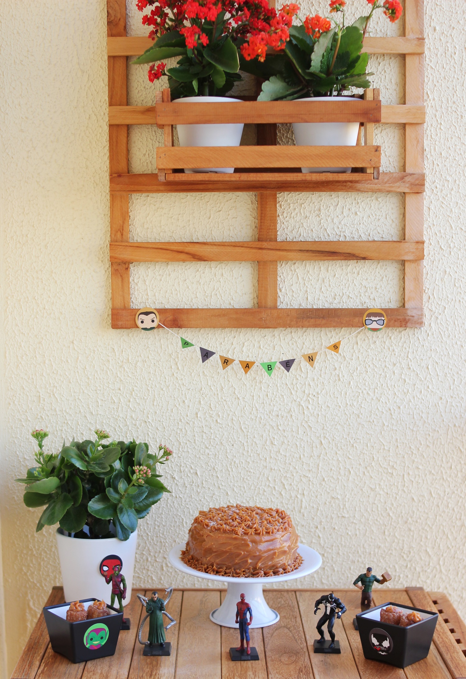 Depois foi hora do parabéns, e tudo estava incrível, o Mike e a minha irmã cuidaram da identidade visual do aniversário, tudo mega personalizado! E minha mãe caprichou no bolo, comes e bebes e na decoração.