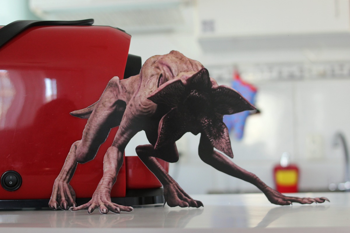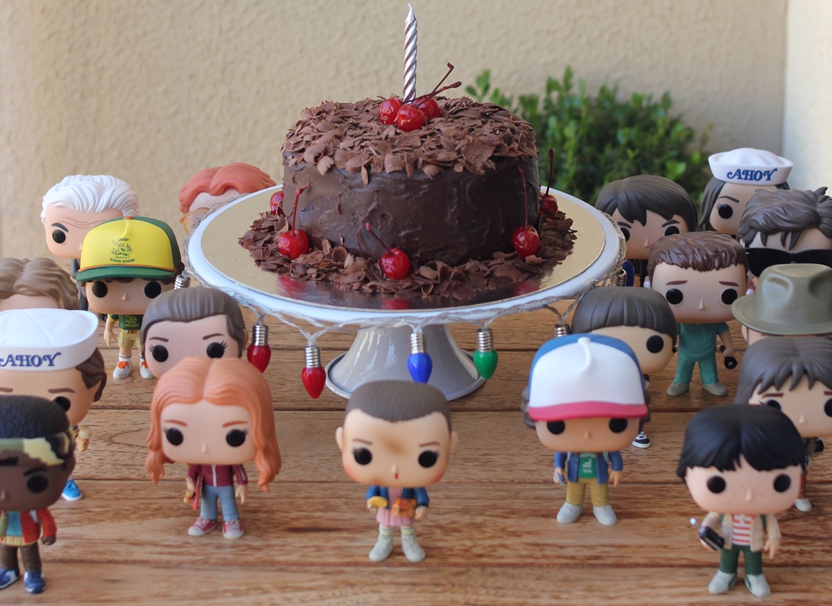 ” — Preparar o tema pra esse niver, deu um trabalhão, mas valeu a pena por toda a experiência que o cenário pôde proporcionar. A decisão do tema, veio da ideia de fazer alguma coisa que fosse noturna, sem necessariamente ser algo relacionado a “Terror”, e Stranger Things, funciona muito bem pra isso, já que mesmo com todo o suspense e sustos, é um tema mais leve.