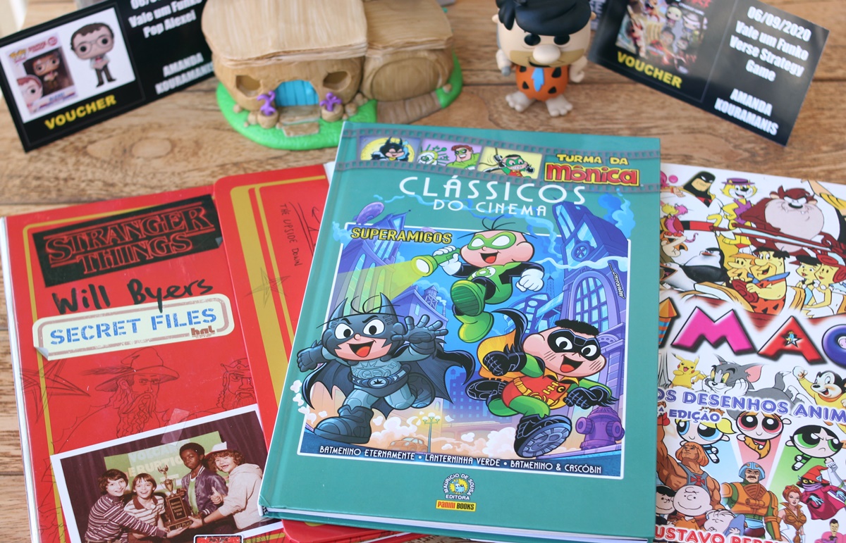 Teve HQ da Turma da Mônica para continuar a minha coleção, um almanaque, um livro muito legal do Will Byers, teve também 2 vouchers, porque nosso querido correio está em greve, então… é aguardar!