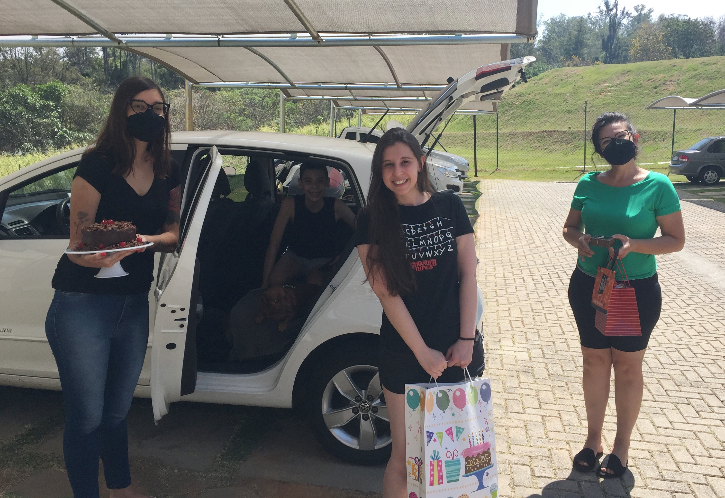 Na hora do almoço teve delivery de aniversário. Minha mãe, irmã e irmão vieram me visitar, teve direito a bolo e muuito presente!