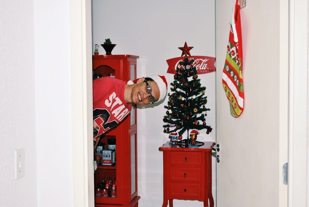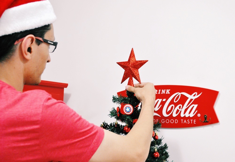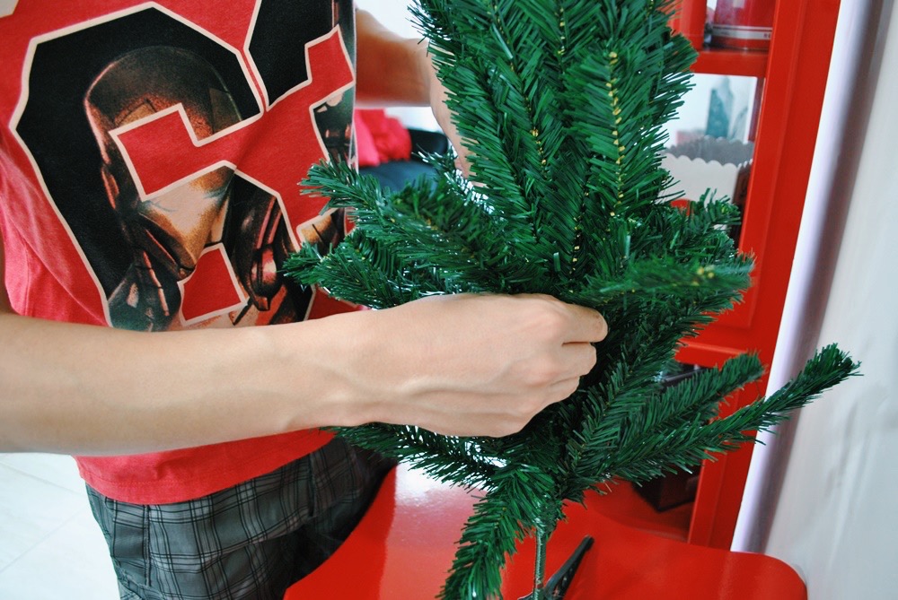 O Mike montou a árvore e deixou ela pronta pra eu colocar os enfeites.