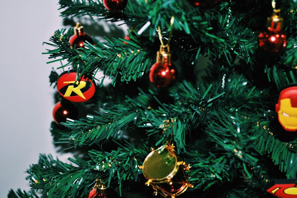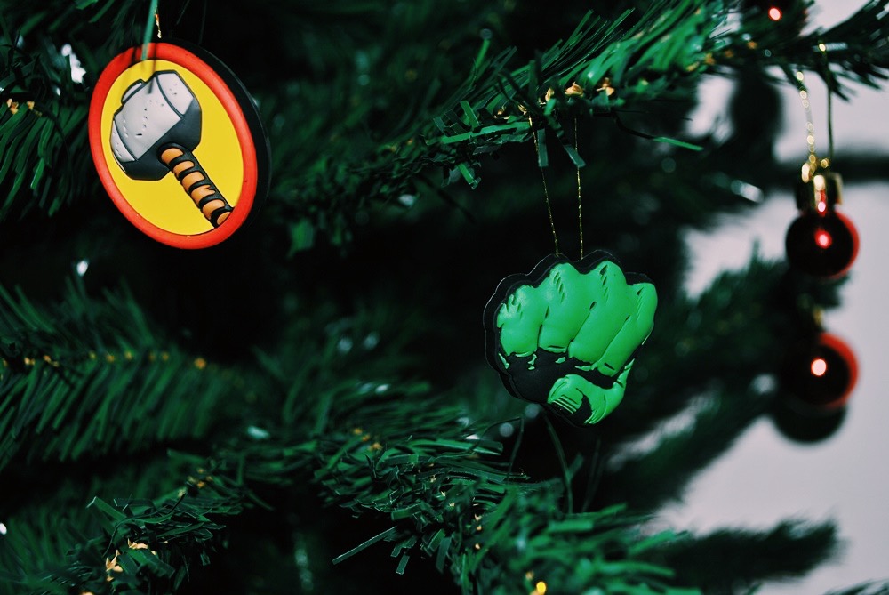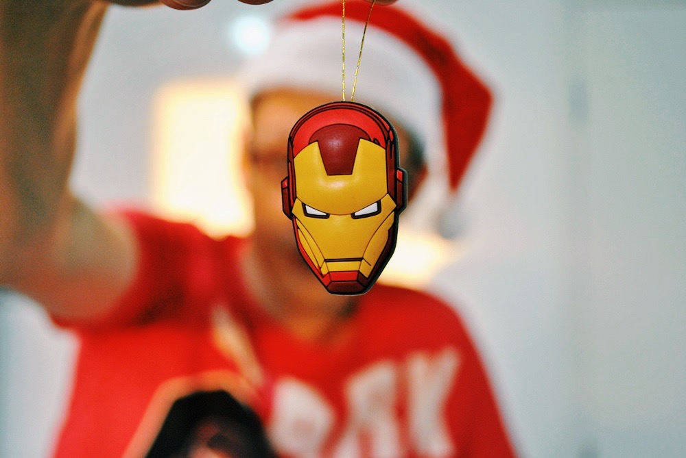 Nesse domingo, fizemos a nossa decoração, tivemos a ideia de fazer uma árvore geek. Isso mesmo! Com tema da Marvel e DC. Para isso, utilizamos os imãs que compramos já faz um tempinho. Eles são da Imãs do Brasil que você encontra na loja do Mike: Comic City. No total usamos 13 imãs: Homem-Aranha, Capitão América, Thor, Hulk, Homem de Ferro, Demolidor, Superman, Mulher Maravilha, Lanterna Verde, Batman, Robin, Liga da Justiça, Flash. Aproveitamos a fitinha de alguns enfeites da árvore para pendurar os imãs.