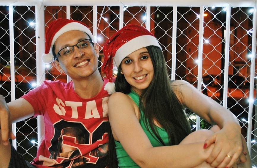 Depois, foi a vez de passar o pisca-pisca na varanda, e deu um certo trabalhinho para ficar certo, mas no final, ficou uma gracinha.