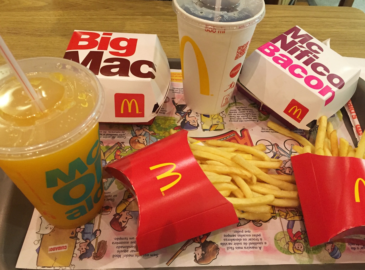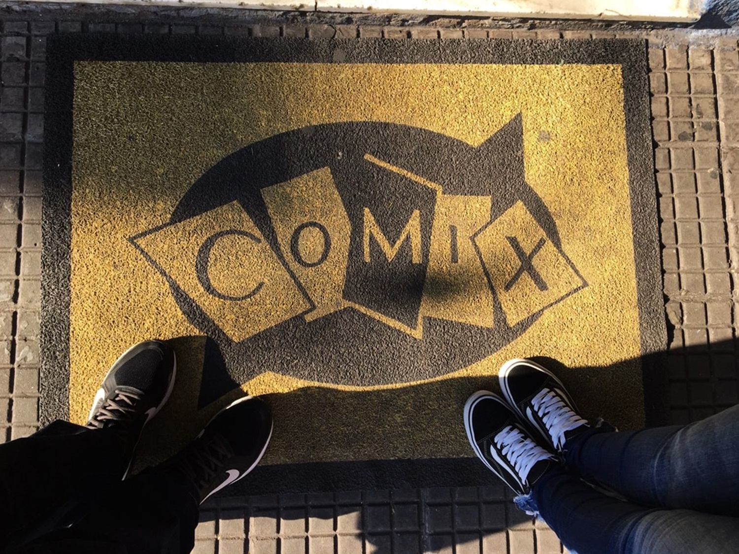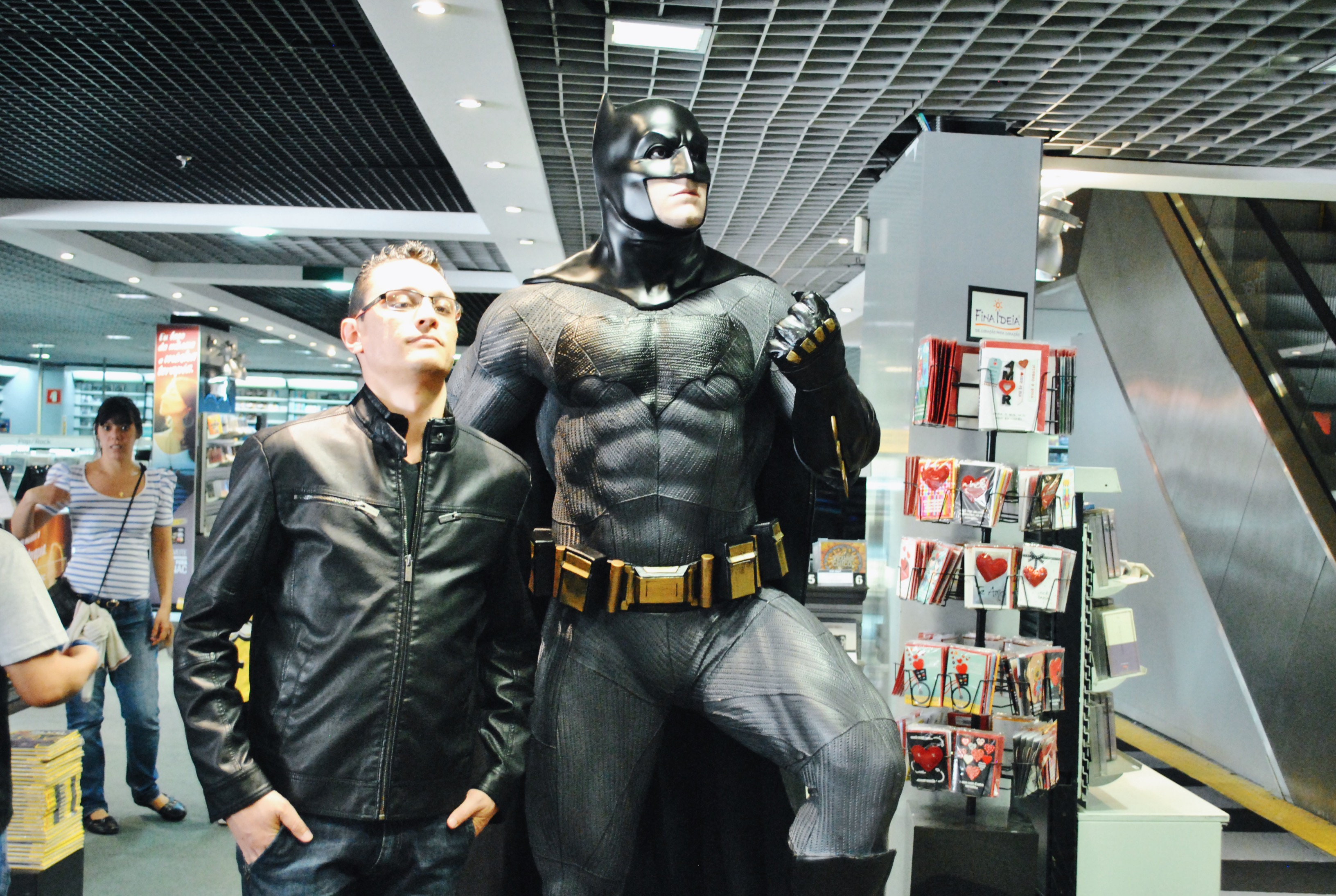 E chegava ao fim de mais um dia de evento. Paramos para comer um lanche antes de partir. O evento já estava praticamente finalizado, então fomos embora. Atravessamos todo o local, andamos o estacionamento, até que… perguntei: Cadê o seu envelope? (Esse que está aí na foto), sim tinha ficado em algum lugar :/ voltamos correndo, andamos muuuito e muito rápido, entramos novamente, e fomos até o último lugar que tínhamos ido (a praça de alimentação), e lá estava o envelope, alguma pessoa tinha deixado em cima da mesa, foi um alívio bem grande, porque lá estava o original que comprou mais cedo (aquele do Batman que estava no foto), e alguns prints. (Arte nº 3 do marido).