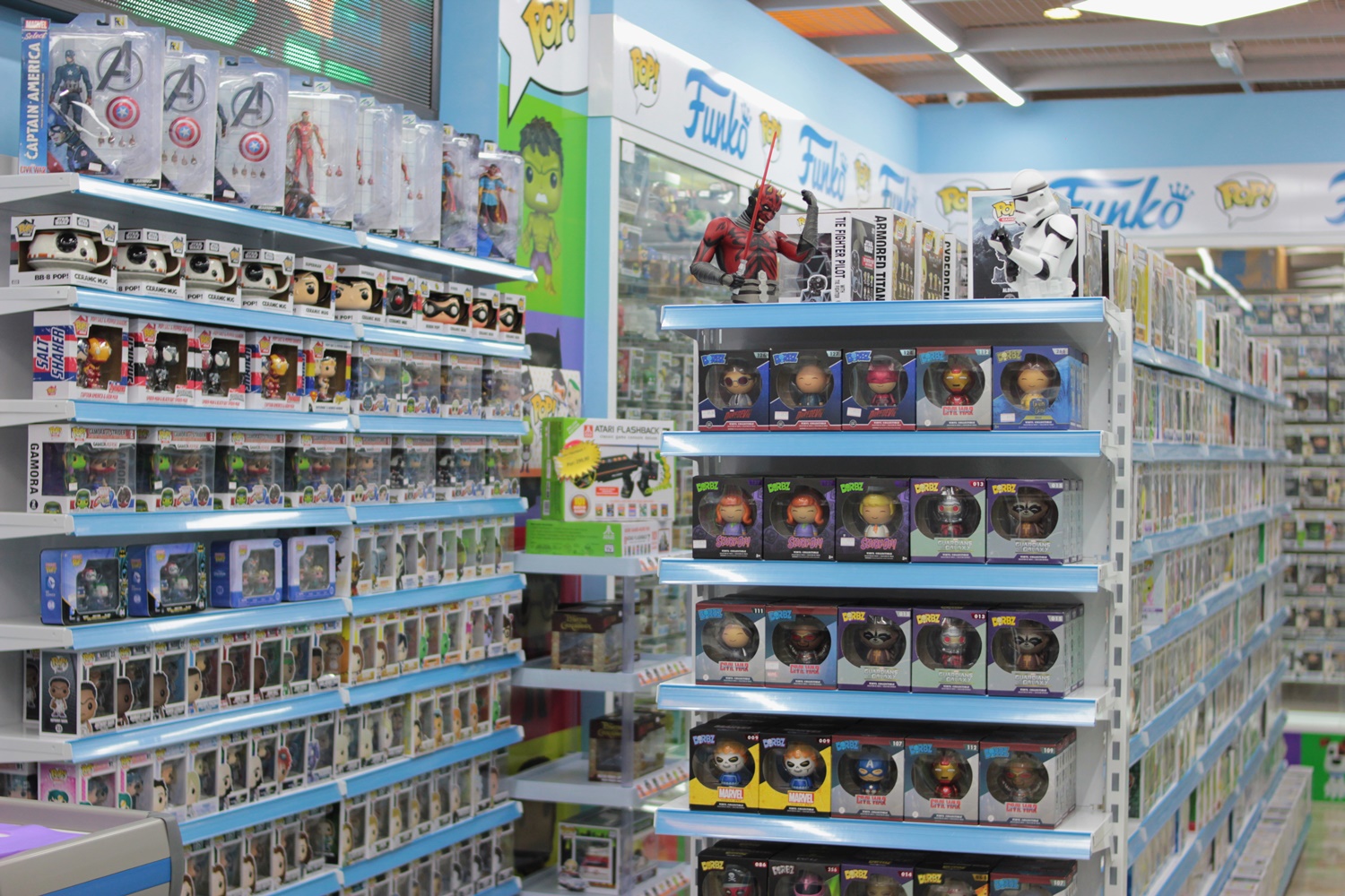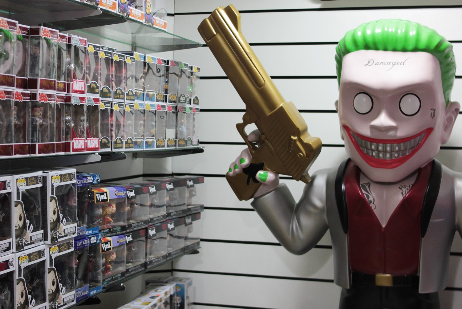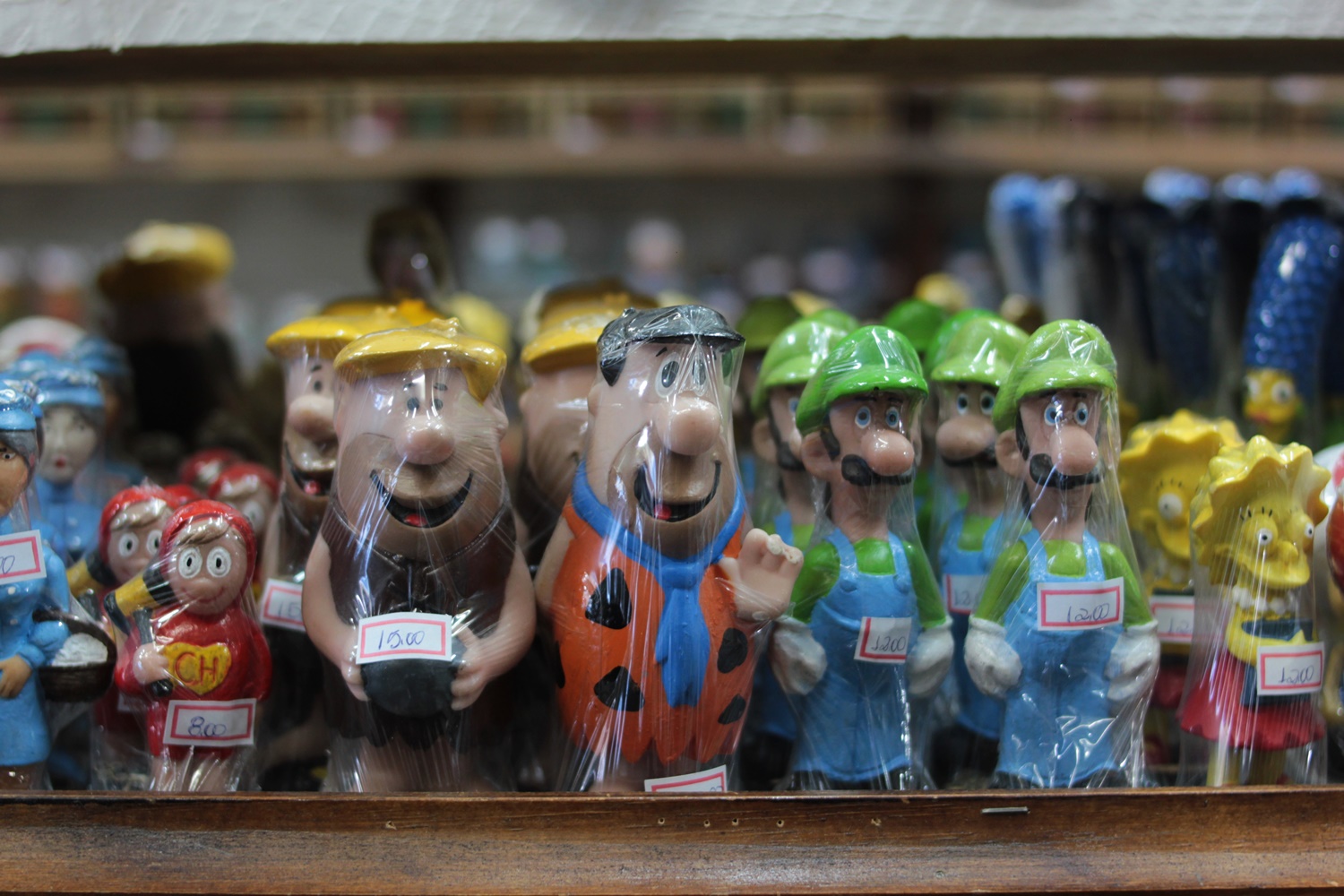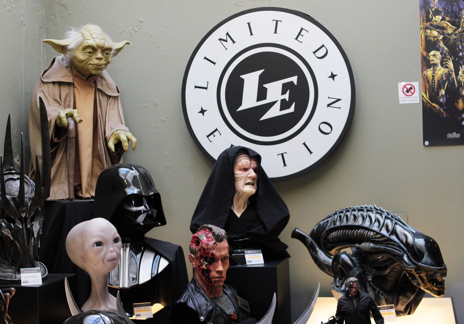 Continuamos andando, e fotografamos os lançamentos de actions e estátuas. Veja quanta coisa maravilhosa!