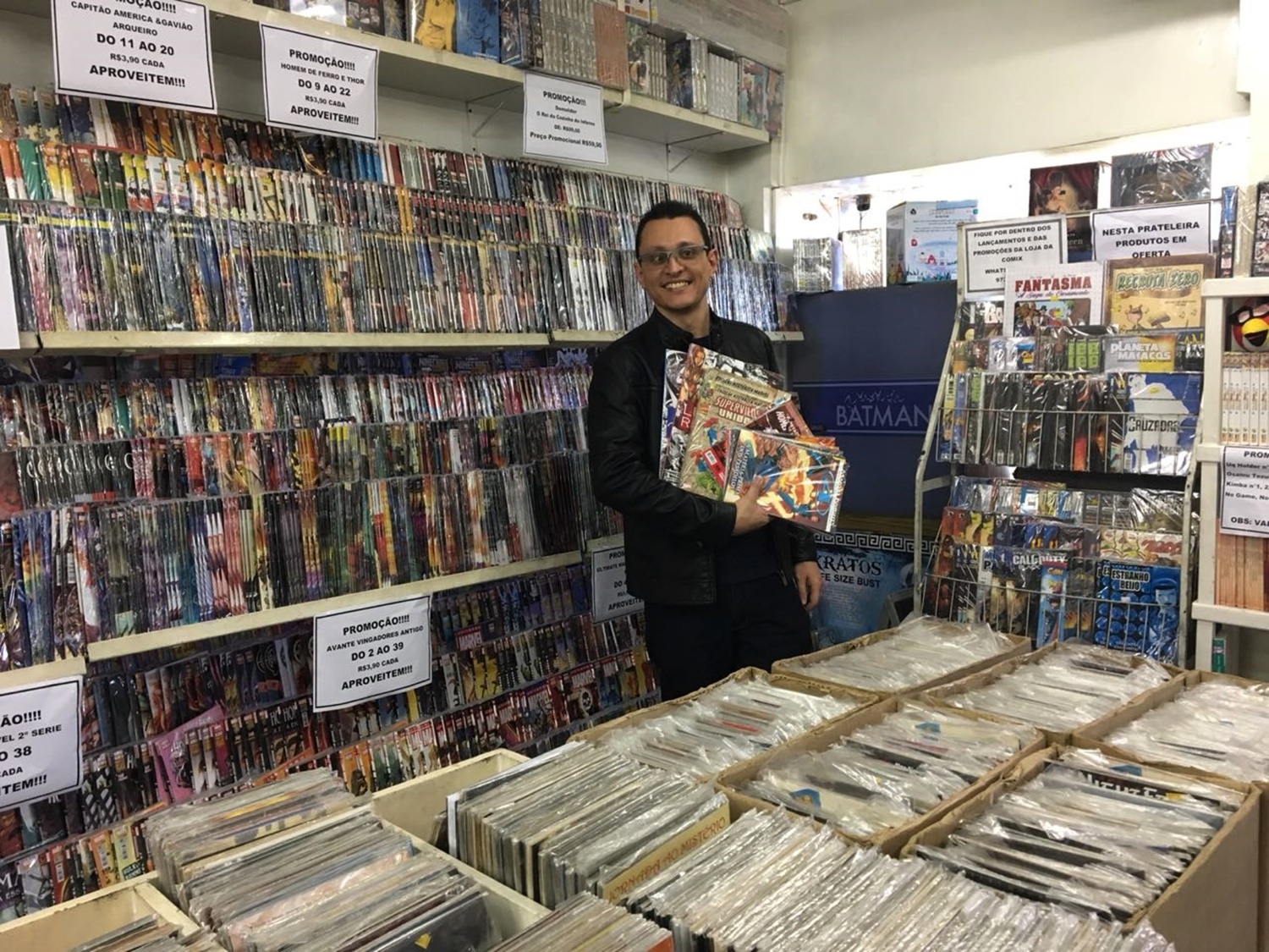 O Mike aproveitou o evento para encontrar seu amigo Erick, que é lá de Minas, que junto com ele faz parte do Aracnofã depois fomos até o stand de um outro amigo do Mike, o Fábio e lá aproveitou para começar as compras.