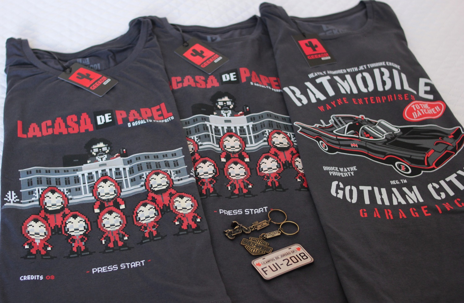 Segundos depois dessa foto, levamos um susto! Cadê o celular do Mike? Procuramos em tuudo, até que encontramos o celular bem pleno no balcão onde compramos os pins, (Arte nº 2 do Marido). O susto passou, partimos para aproveitar o evento. Esses foram os pins que compramos 🙂