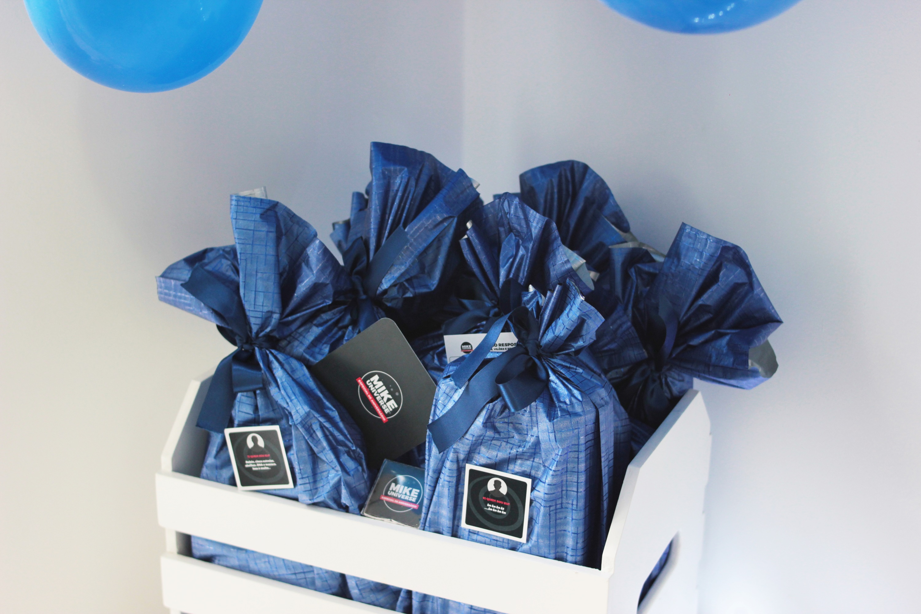 Todos os presentes do Mike tinham uma plaquinha, indicando meu nome mais um número.